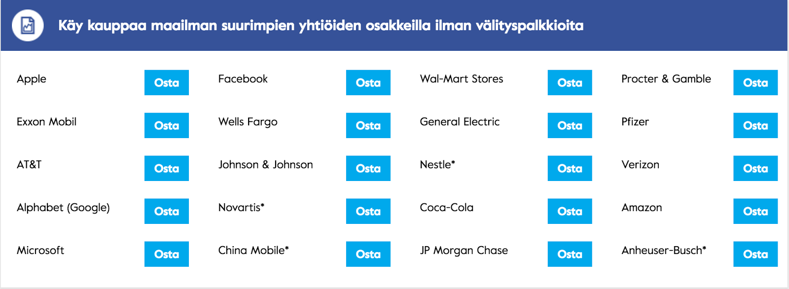 Avaa tästä maksuton tili Nordnettiin ja käyt ensi viikon ajan kauppaa yllä mainituilla osakkeilla ilman kaupankäyntipalkkiota! (normaalisti min. 15€/toimeksianto)